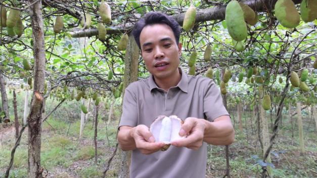 八月瓜学名“三叶木通”,在《本草纲目》中亦有记载,是一种药食同源的水果,因其果形似香蕉,又有“土香蕉”之称,富含糖、维生素C和12种氨基酸,营养价值很高。