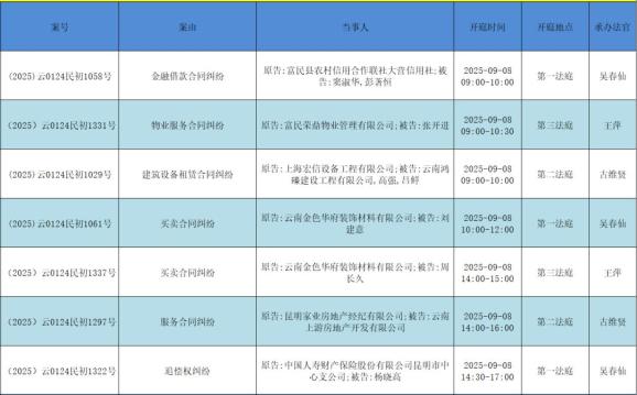 原标题:《【开庭公告】富民法院开庭排期表(2025年9月8日——9月12日)》