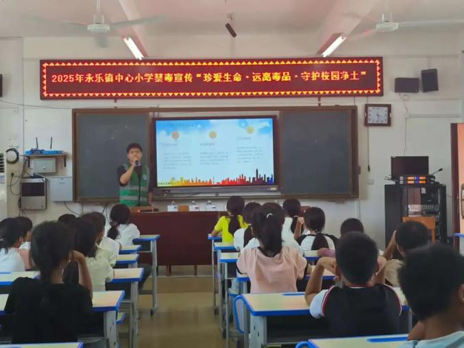 在永乐镇中心小学,禁毒社工结合史料,详细讲述禁毒先驱林则徐虎门销烟的壮举,将历史底蕴与现实警示相结合。活动中不仅展示海洛因、冰毒等毒品模型,更重点呈现伪装成“彩虹烟”“聪明药”的新型毒品,通过对比讲解,帮助百余名师生识破毒品“伪装”。
