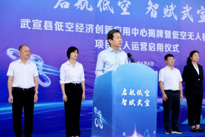 在隆重而热烈的气氛中,县委书记雷应天宣布武宣县低空经济创新应用中心及低空无人机遥感网项目正式启用。这一举措标志着武宣低空经济发展迈入里程碑式的新阶段,武宣正以“低空”为突破口,奋力抢占未来发展制高点,书写县域经济高质量发展的新篇章。