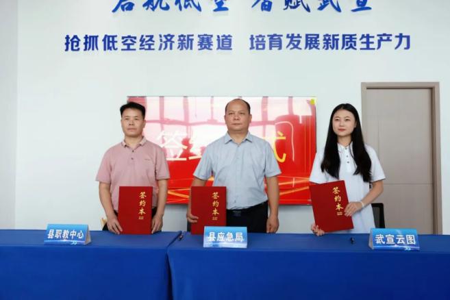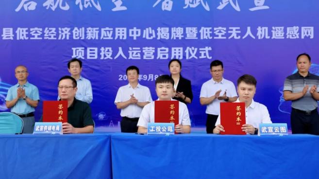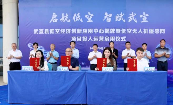 仪式上,广西武宣云图低空经济有限公司与与广东能飞航空、一飞智控(天津)、广西佳宁智能、武宣县工投公司、武宣供销电子商务公司等企业签署战略合作协议,涵盖低空物流、空中巡查、应急救援、文旅航拍、测绘遥感及培训教育等领域;并与武宣县应急管理局、职教中心等单位签订业务合作协议,共同推动低空技术与行业应用深度融合。