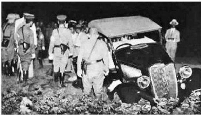 当日本兵正欲冲进机场大门时,碰上的守兵就是化装成保安部队的步兵旅士兵。这些士兵见日本军人横冲直撞、不听制止,就果断鸣枪警告。不料两人既不停车,更不后退,相反朝机场内的跑道驰去,军车急速右转弯驶入碑坊路(当时在机场东侧,现为机场内一便道)。在离开机场大门北百余米处被追兵击中,大山勇夫当场中弹毙命于车内,斋藤要藏见状不妙便弃车而逃,也被当场击毙。