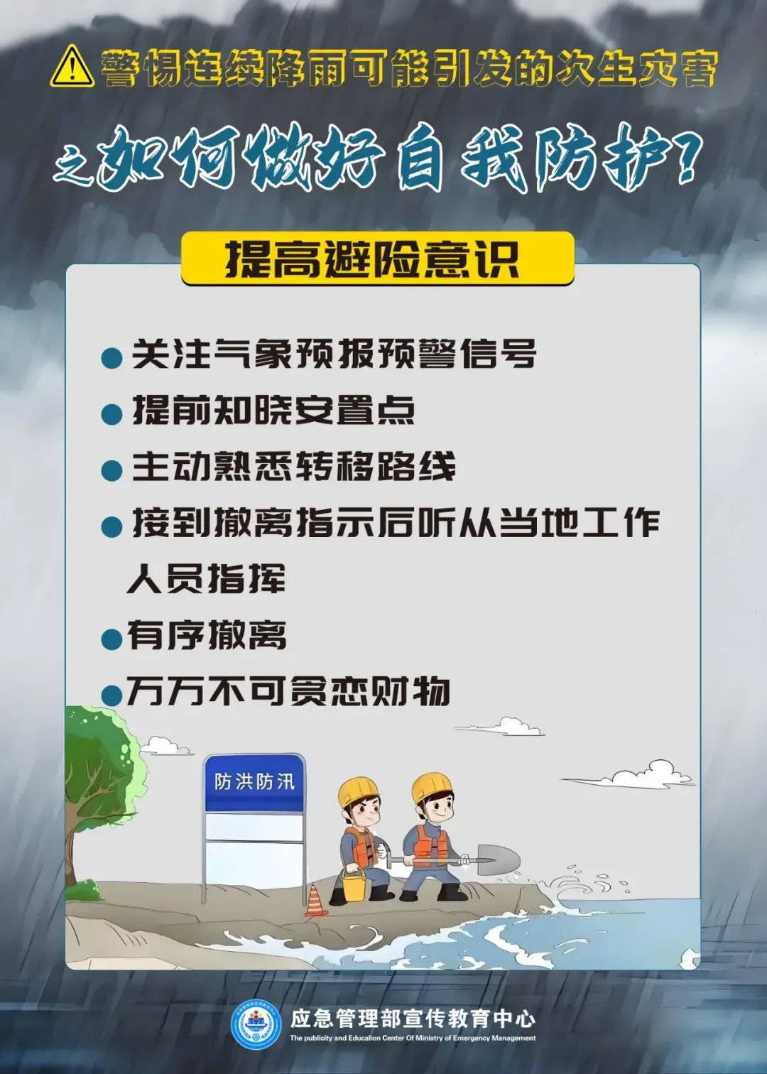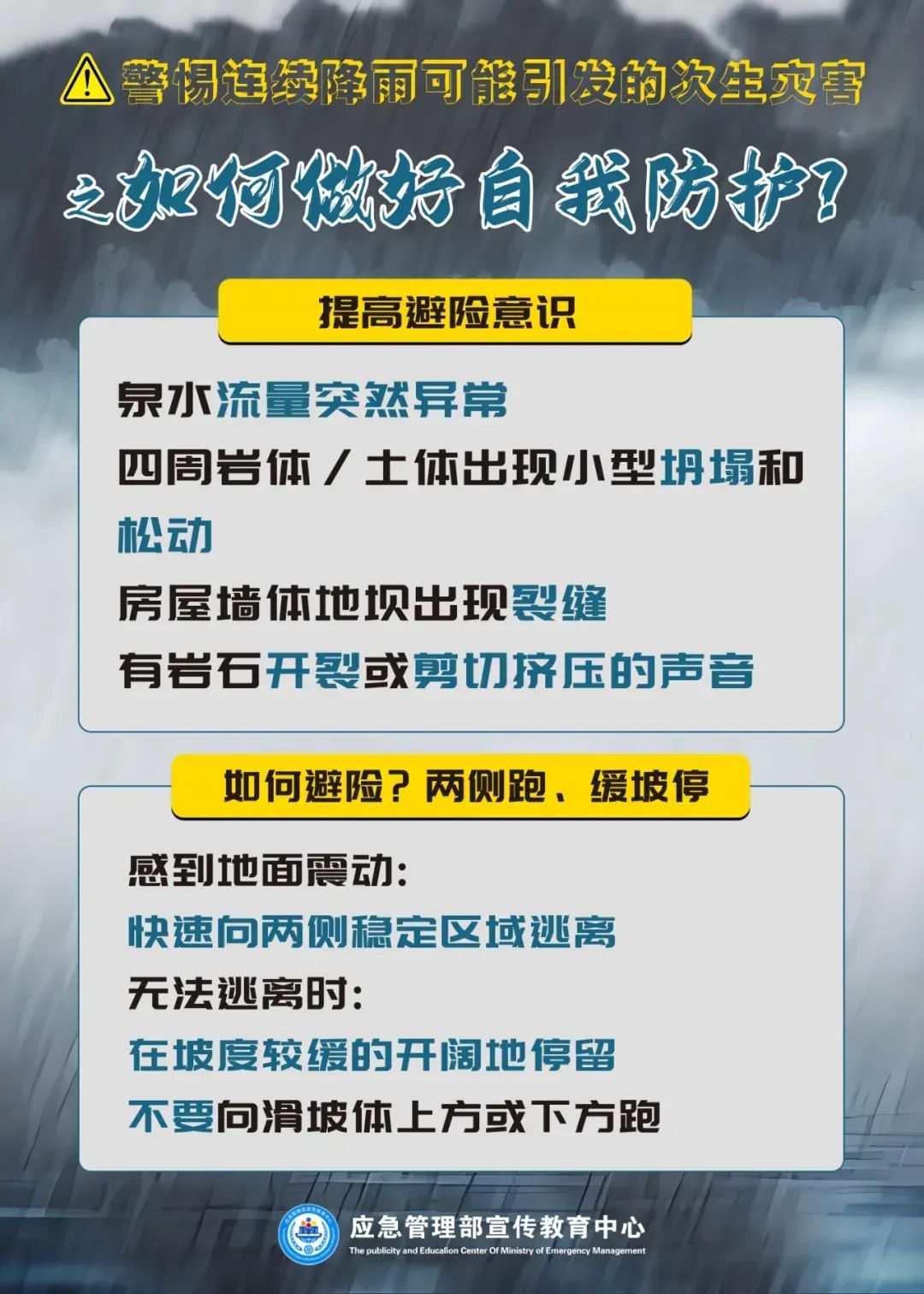 由于前期累积雨量大且地质灾害具有滞后性,各地各部门仍需高度重视,继续密切关注雨情水情汛情变化,加强值班值守和会商研判,加强对山边屋、水边屋、削坡建房点、地质灾害隐患点及高风险区等薄弱环节的巡查排查,按预案要求及时启动应急响应,落实落细各项防范应对措施,确保人民群众生命财产安全。