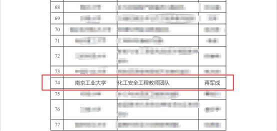 近日,教育部公布第四批“全国高校黄大年式教师团队”创建示范活动入围名单,全国共有200个教师团队入选。我校蒋军成教授领衔的化工安全工程教师团队成功入围。