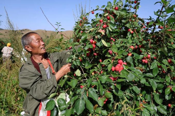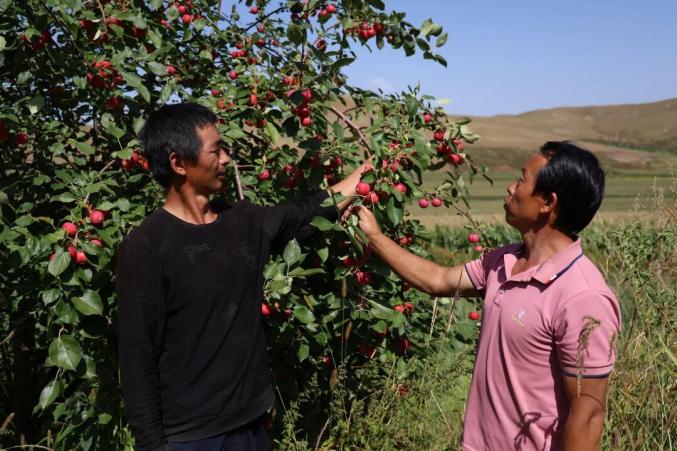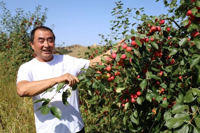种植户孙树立的九十亩果园今年迎来好收成,他蹲在田埂上给记者算账:“一亩地能卖两千多元,刨去成本净赚千把块钱。沙果树产果能产几十年呢。”更让他得意的是林间套种的燕麦——嫩绿的草苗为果树保墒,收割后又能卖给饲料厂,生态循环让这片曾经的荒山成了聚宝盆。