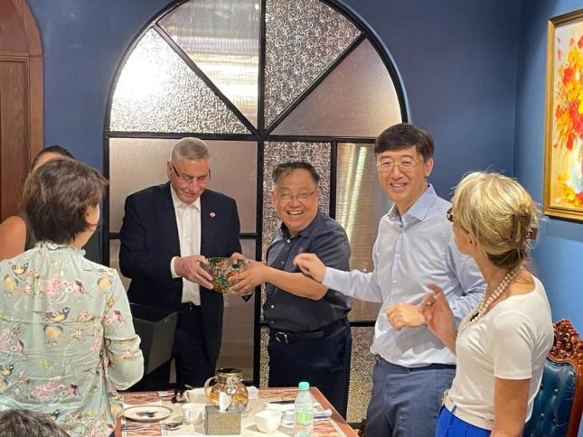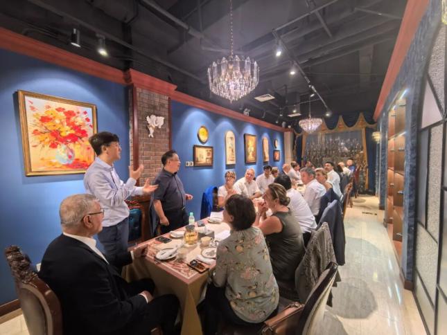 在随后的晚宴上,罗林教授代表北京语言大学对查潘先生和代表团成员的到访表示热烈欢迎。他指出,这是他接待的最大规模的外宾代表团之一,因此对于客人们的到访感到兴奋也非常感谢。他强调,北京语言大学是一所以国际中文教育为特色、以语言教育和研究为优势、多学科协调发展的世界知名大学。建校至今,已为全球189个国家和地区培养了30余万名通晓汉语、熟悉中华文化的国际化人才,为促进中外语言教育和人文交流作出了重要贡献。他特别指出,作为区域国别学一级学科的首倡高校,教育部国别和区域研究工作秘书处、中国高等教育学会区域国别学研究分会秘书处均设于我校。北语高度重视该学科建设,致力于与海外高校和民间组织建立长期友好合作机制,培养更多区域国别研究人才,努力在新时代为深化中外文明交流互鉴、推动构建人类命运共同体贡献更大力量。北京语言大学已经与土耳其多家高校建立了长期合作关系,希望将来能够看到更多的土耳其合作方。