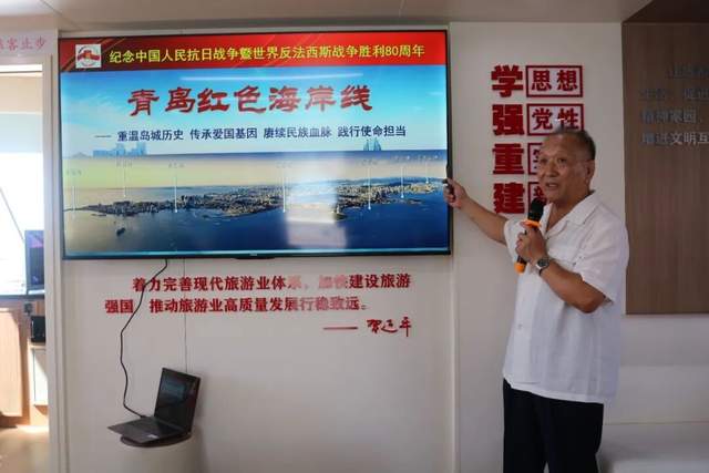 活动伊始,青岛市文史专家王继军以“青岛前海一线的抗战印记”为主题,结合太平角、八大关等沿途红色遗迹的历史背景,用鲜活的人物故事、详实的历史资料,还原了抗日战争时期青岛人民投身革命、保卫家园的峥嵘岁月。“当年,这里曾是地下党员传递情报的秘密据点,无数先辈用热血守护着这片土地……”生动的讲解让在场人员仿佛穿越时空,深刻感受到红色基因在青岛海岸线上的传承。