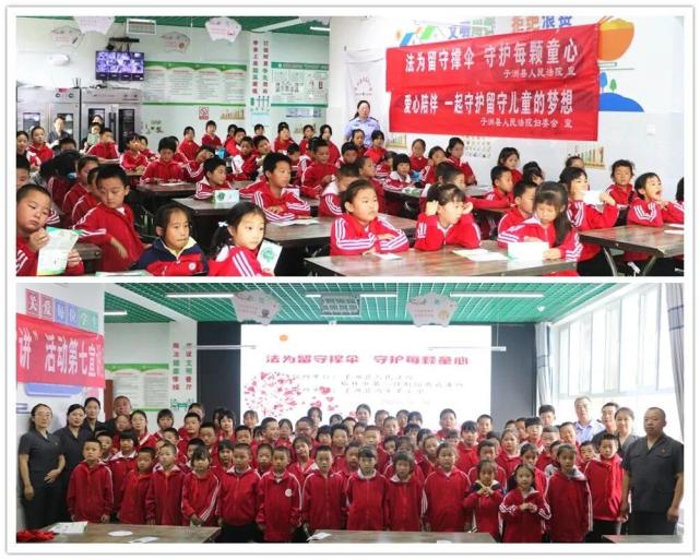 子洲法院法官干警走进子洲县冯家渠小学以“爱心陪伴,一起守护留守儿童的梦想” 为主题开展法治教育课