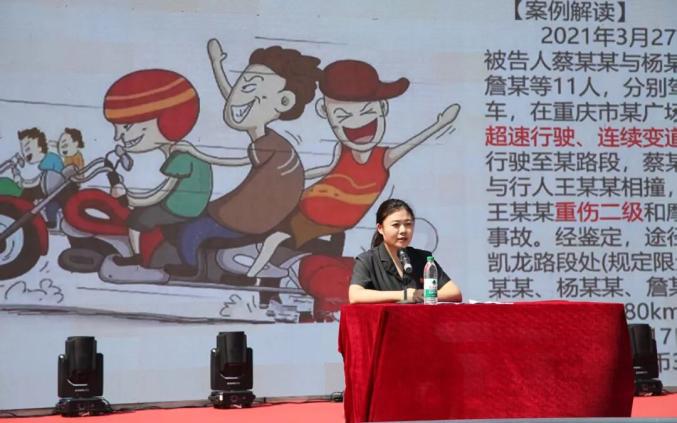 活动中,平邑法院干警以《飙车、炸街:法律视角下的疯狂与代价》为题,用案例剖析、法律解读、视频展示等方式,给学生们讲解了飙车炸街行为的严重危害,为7000余名学生敲响了交通安全的警钟。