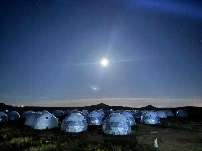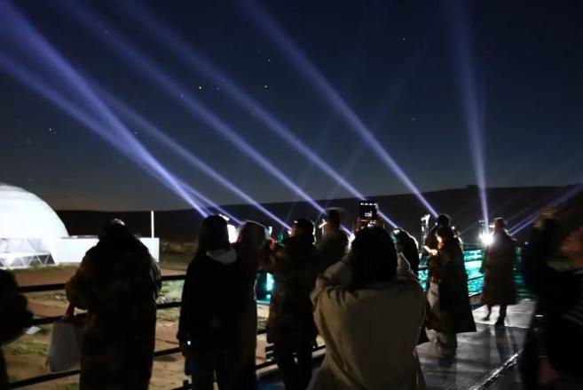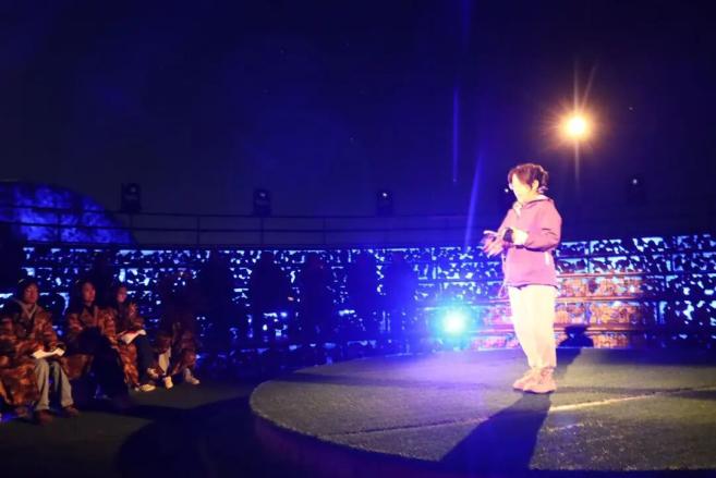 5日夜晚,诗会成员披星戴月抵达乌兰哈达星河计划观星营地。大家通过专业望远镜近距离观测满月,在营地二楼平台欣赏灯光秀;随后,众人步入观星台,聆听傅彩峰老师讲解星座、星宿及银河系的天文科普知识。在这片远离光污染的草原净土,诗人们共同沉醉于璀璨的星空。傅彩峰老师的娓娓讲述,搭配乌兰察布歌舞团非遗长调传承人孟克其其格演唱的长调《星星》,让在场者仿佛置身星河,化作璀璨星辰随宇宙前行,恰如郭沫若《天上的街市》中“我想那缥缈的空中,定然有美丽的街市。街市上陈列的一些物品,定然是世上没有的珍奇”的意境。