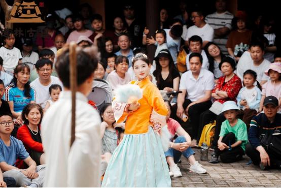 白天的道林,是一场永不落幕的文化盛宴。古风霓裳舞衣袂飘飘,仿佛从历史画卷中款款走来;包公断案情景剧扣人心弦,生动再现了青天正气的凛然风范;家国情怀主题演出感人至深,激发起游客内心浓浓的爱国之情。这些沉浸式场景剧,让历史不再是书本上的文字,而是变得可触可感,仿佛触手可及。
