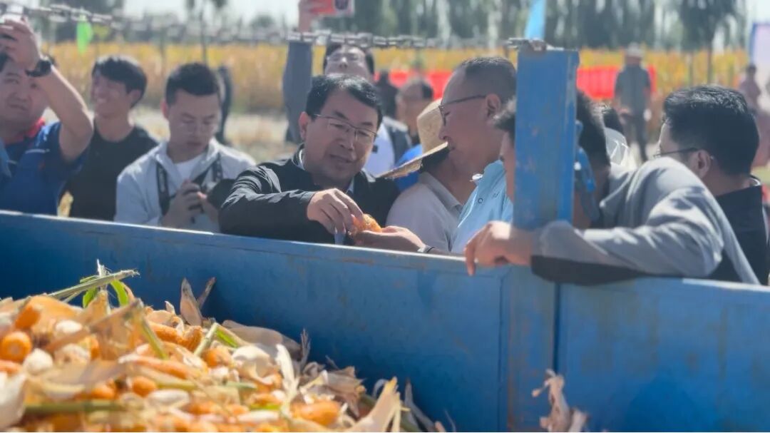 “演示开始!”随着甘肃省农业机械化技术推广总站站长孟养荣宣布,一台台收获机缓缓驶入玉米地:前端摘穗板上下浮动,错刀式柔性分离茎秆与果穗,剥皮系统渐变式褪去果穗外皮——短短几分钟,无损的金黄果穗便源源不断落入收集仓,实现了制种玉米摘穗与剥皮作业的一次性完成。经现场专业人员测定,其机收损失率仅为2.03%,完全符合预期标准。这场“科技赋能丰收”的现场演示,标志着中国农业发展集团旗下山东巨明机械有限公司联合甘肃农业大学、甘肃省农业机械化技术推广总站攻关的“制种玉米专用收获装备”,正式在甘肃省实现规模化落地应用。
