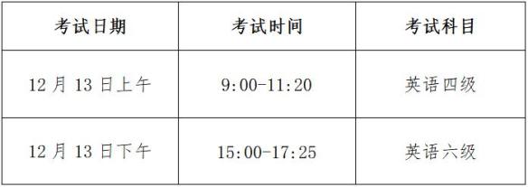 11月22日英语四级口试,11月23日英语六级口试,场次安排如下: