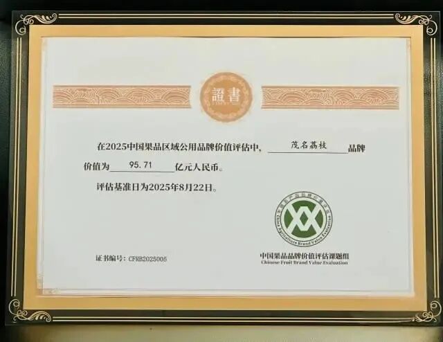 近日,第十届中国果业品牌大会在陕西延安召开,会上公布了2025年果业品牌价值评估结果。首次参与果品区域公用品牌价值评估的“茂名荔枝”,便以95.71亿元的品牌价值及 58710.13 万元的品牌收益跻身TOP5。