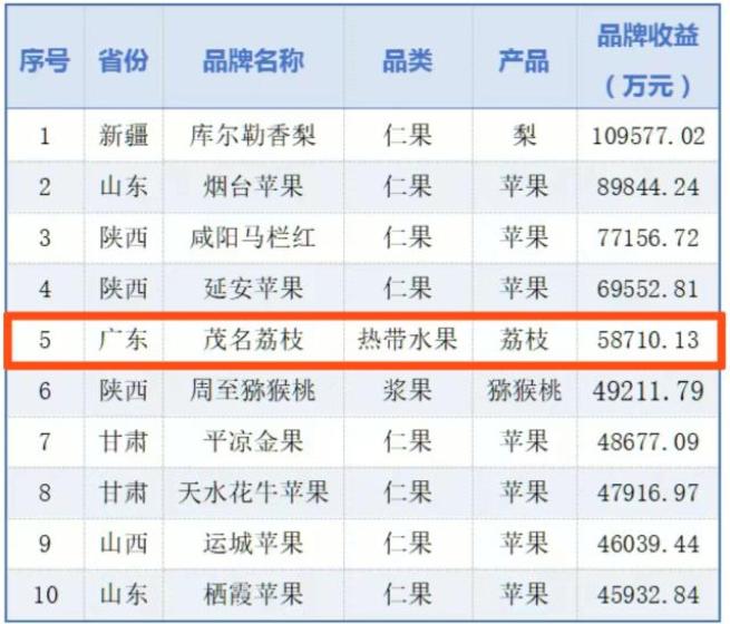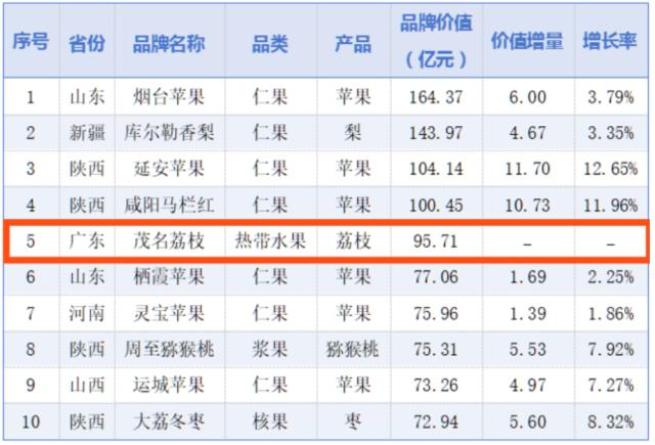 “茂名荔枝”以 95.71 亿元品牌价值跻身果品TOP5,领跑热带水果!
