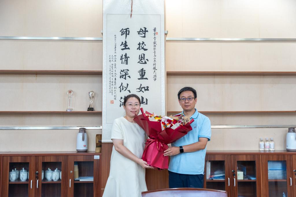 走访慰问中,校领导们向各位老师送上鲜花并致以节日的问候和祝福,详细询问教学科研、团队建设及生活情况,就人才培养、师资引育、教育教学改革、科研创新等话题与老师们深入交流,认真听取大家对学校高质量发展的意见建议,并现场回应关切。
