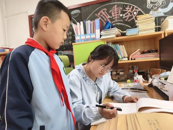 图为西宁市中庄小学老师课间时分耐心答疑 区教育局供图