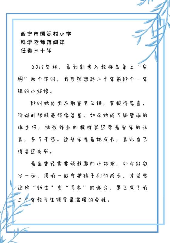 从 “安同学” 到 “安老师”,从 “蒋老师” 到 “蒋前辈”,西宁市国际村小学的教室里,教育的温暖初心,在两代人之间稳稳传承。