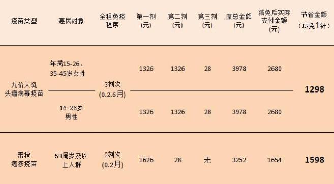 3.惠民方案:全程接种共3剂,按0、2、6月程序接种,接种第1、2剂需支付疫苗费和预防接种服务费,接种第3剂仅需支付28元预防接种服务费。