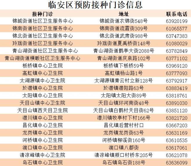 临安区内各镇(街道)卫生院(社区卫生服务中心)预防接种门诊均为惠民活动实施单位。