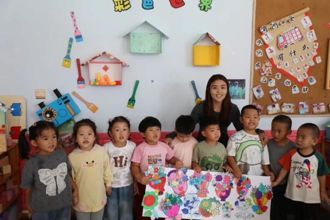 在第二小学学前教育中心,孩子们通过共同创作画作、涂鸦和户外游戏等方式向老师献礼。大二班的鸿格尔珠拉和阿茹娜小朋友大声说道:“老师教师节快乐!您辛苦啦!”
