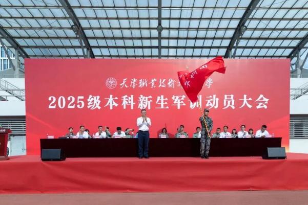动员大会在庄严雄壮的国歌声中拉开帷幕。校党委常委、党委宣传部部长任雪浩宣读了《2025级学生军训团成立的决定及人员任命》。李富森代表学校向军训团授旗。