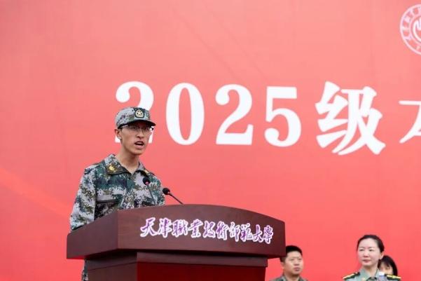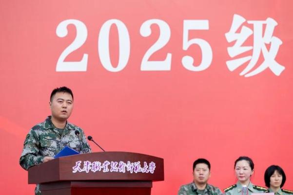 军训教官团代表、信息技术工程学院2023级学生胡伟表示,全体军训教官将会以高昂的热情投入到本次的军训工作中,确保本次军训任务高标准、高质量完成。2025级参训新生、自动化与电气工程学院学生李凯越作为参训新生代表发言,他号召全体新生要铭记历史,缅怀先烈,传承伟大抗战精神,在军训中以拼搏的姿态展现天职师大学子的风采。带训教师代表、电子工程学院辅导员张伟表示,全体带训教师会在训练场上与大家并肩同行,与同学们共同面对挑战、共同成长。