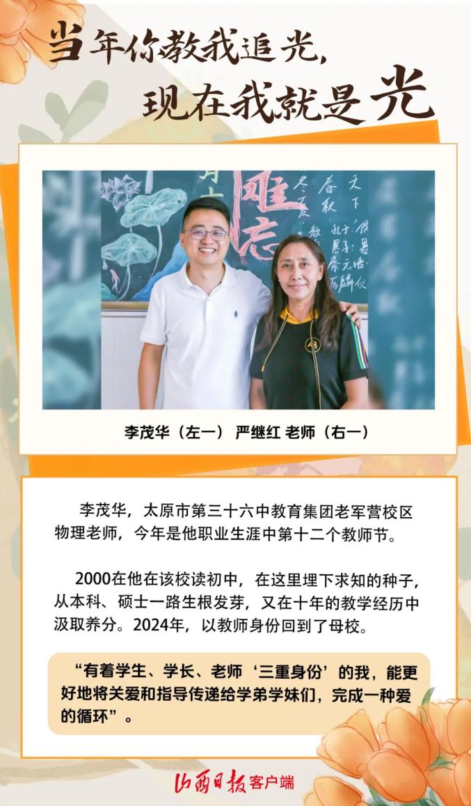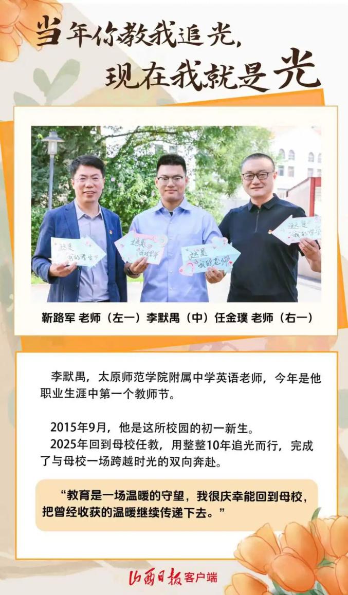 9月10日,是第41个教师节。记者走进太原市多所学校,用镜头记录老师和他们老师的故事。同一张桌子,从写作业到改作业。他们从母校毕业,又回到母校任教。