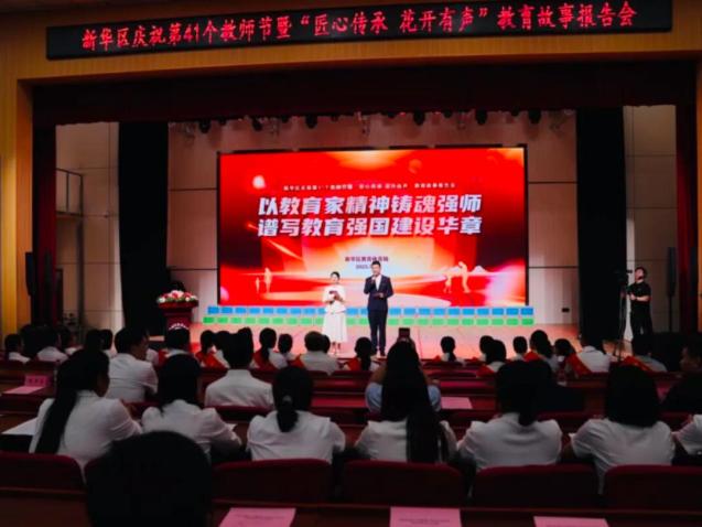在第41个教师节之际,新华区举办庆祝活动暨“匠心传承 花开有声”教育故事报告会,400余人共庆。活动表彰了新华区优秀教师、优秀教育工作者、优秀乡村教师及师德标兵,以榜样力量助推教育发展。教育故事报告会上,第十六中学、第二实验小学等学校分享了教育故事,展现了师者的坚守与奉献。最后,优秀教师和新教师代表宣誓,将以教育家精神为指引,共赴教育的星辰大海。