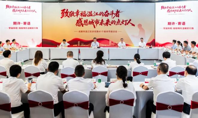 9月9日,温江区庆祝第41个教师节座谈会召开,致敬幸福温江的奋斗者,感恩城市未来的点灯人。区委书记马烈红出席并讲话。他强调,要加快推进教育强区建设,坚持立德树人,敢于创新创造,把“品质教育”办成人民满意的教育,不断开创温江教育事业新境界。