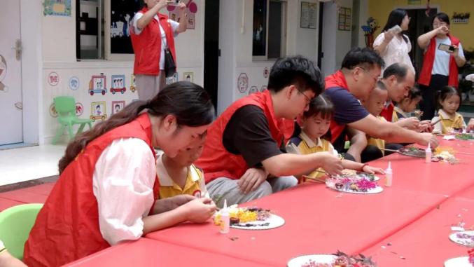 活动现场暖意融融,志愿者们将提前备好的空白团扇与装饰品拿出,手把手指导小朋友创作。孩子们认真投入,把对老师的心意贴缀在团扇上。制作完成后,他们捧着亲手装饰的团扇送给老师,表达对老师的感恩,现场满是温馨与感动。