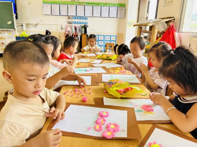 珠兰中心幼儿园老师通过多种形式为孩子们讲述了教师节的由来和意义,让孩子们知道每年9月10日是教师节,鼓励孩子用自己的行动和最纯真的方式表达对老师的爱和敬意。老师提前准备好颜料和画纸,孩子们伸出小手指,蘸取不同颜色的颜料,在画纸上轻轻点按,一朵朵生动的“小花” 便绽放开来,每一朵 “花” 都饱含着对老师的喜爱。