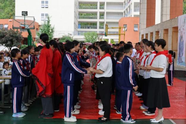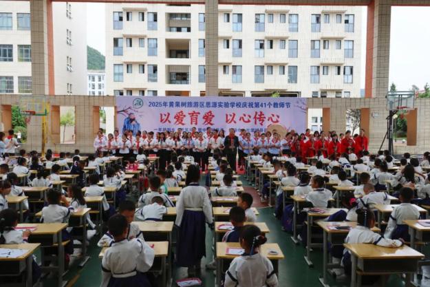 9月10日,黄果树旅游区思源实验学校举行庆祝第41个教师节系列主题活动。活动涵盖一年级新生“开笔礼”、中队辅导员及红领巾小社团辅导员聘请仪式、教师节庆祝等环节,全体师生及家长代表共同参与,现场气氛庄重而热烈。