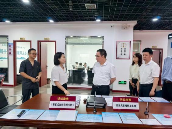 9月9日,最高人民法院国际合作局局长段农根一行到鹤城法院国际陆港区人民法庭指导调研,湖南高院党组成员、副院长陈坚,怀化中院党组书记、院长左牧,鹤城法院党组书记、院长谌香菊陪同调研。