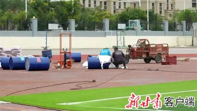 △金昌市第二小学修缮塑胶跑道。本文图片均由金川区融媒体中心提供