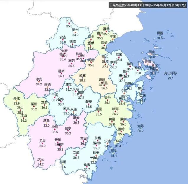 嵊州、东阳:37.2℃