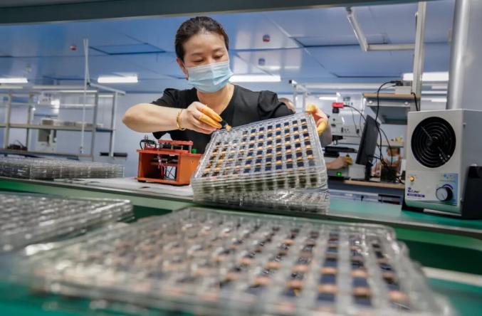 龙盛智能科技有限公司的工人在生产电子元件。 陈磊摄