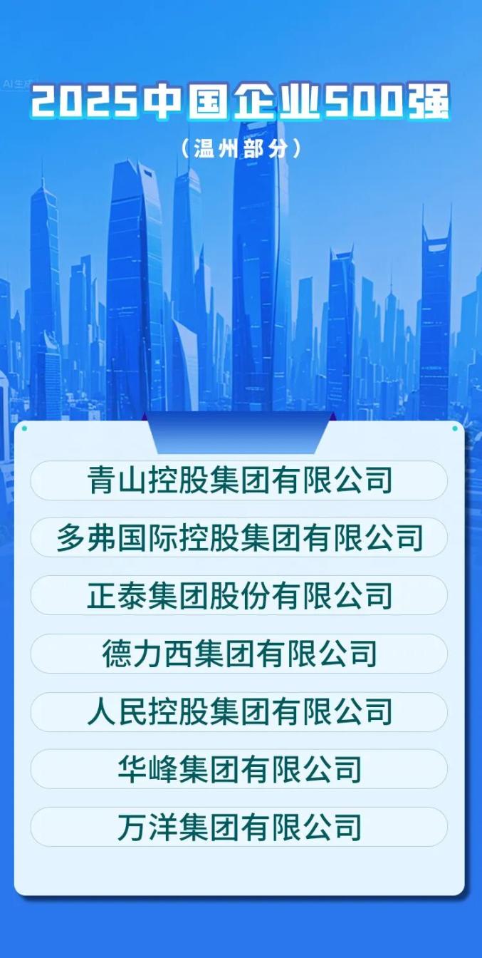 原标题:《温州7家!2025中国企业500强榜单出炉!》