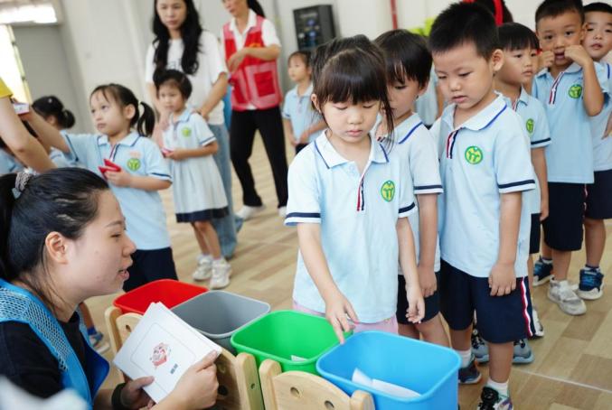 秋风送爽开学季,茂名市开启2025年新学期生活垃圾分类“开学第一课”活动。9月18日,市教育局、市城管执法局携手走进茂名市第一幼儿园,以“分类润童心·绿色育未来”为主题,通过“课堂教学+趣味科普+互动实践”的多元化形式,将绿色、低碳、环保的文明理念深植孩子心中,为孩子们开启了一场妙趣横生的绿色启蒙之旅。