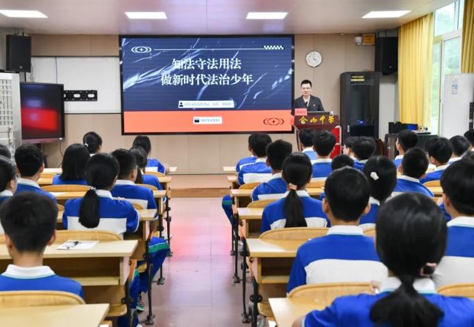 课堂上,谭海蛟以“知法守法用法 做新时代法治少年”为题,围绕法律的演变历程,结合法院工作职能,系统阐释了法律的规范性、强制性与普遍约束力特征。同时立足青少年群体常见的校园欺凌、毒品犯罪、性侵犯罪等典型案例以案说法,聚焦犯罪诱因、触犯法律、危害后果等问题,引导学生明辨是非,养成办事依法、遇事找法、解决问题用法、化解矛盾靠法的行为习惯,自觉扣好人生第一粒法治“扣子”。
