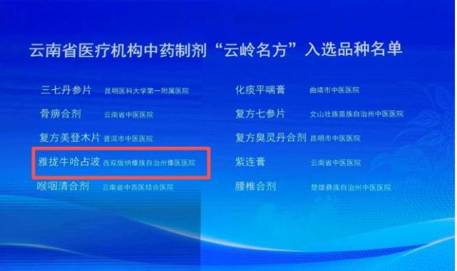 原标题:《祝贺!傣药制剂“雅拢牛哈占波”入选首批“云岭名方”》