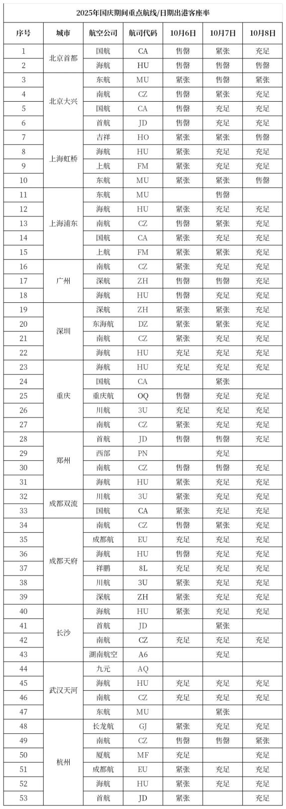 复航后的美兰机场将迎来2025年国庆中秋假期返程高峰,现整理热门城市10月6日-8日出港航班余票信息,其中10月6日出港北京、上海、广州余票较少,10月7日-8日出港余票均较为充足。