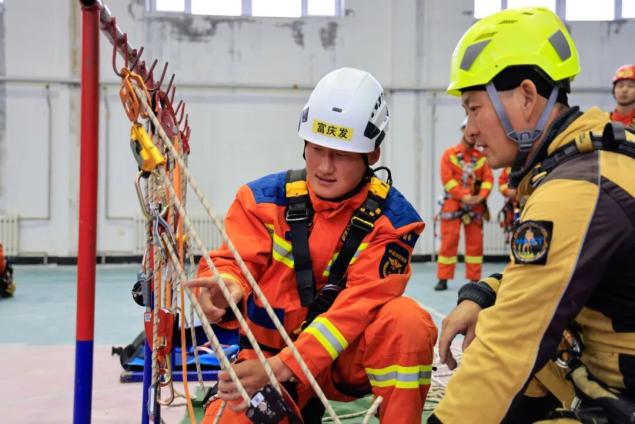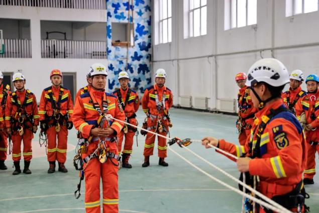 在实操中,聚焦绳索专项技术,开展双绳体系上升与下降、双绳系统搭建、锚点稳固设置、高空伤员垂直转运等核心科目训练。教练团队逐环节示范操作细节,如“山地岩石锚点加固技巧”“绳索磨损快速检测方法”“绳索断裂应急处置”等,学员分组协作反复训练,直至动作标准、流程规范、技能熟练。