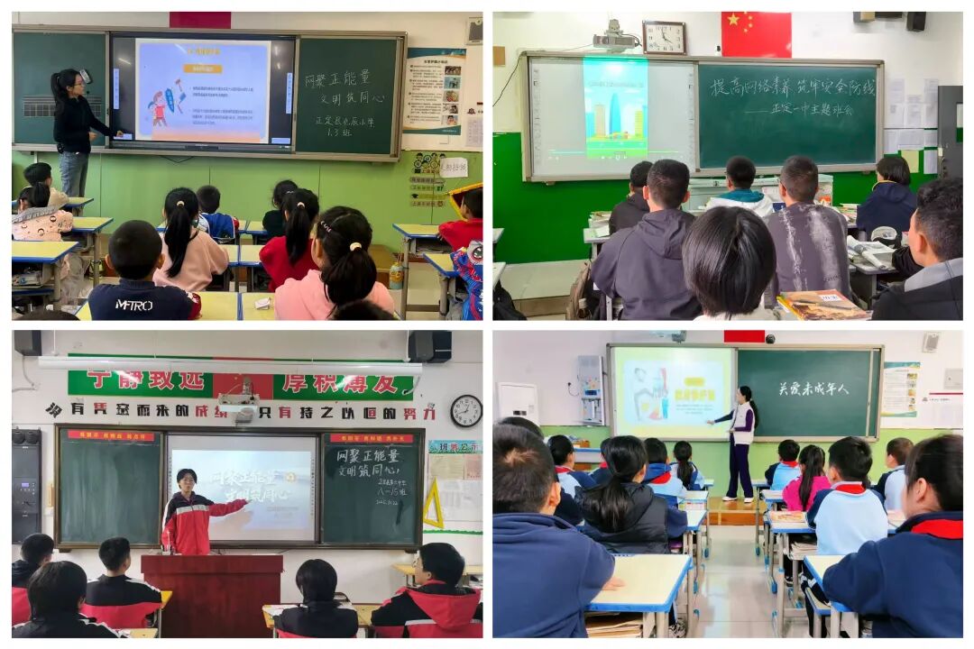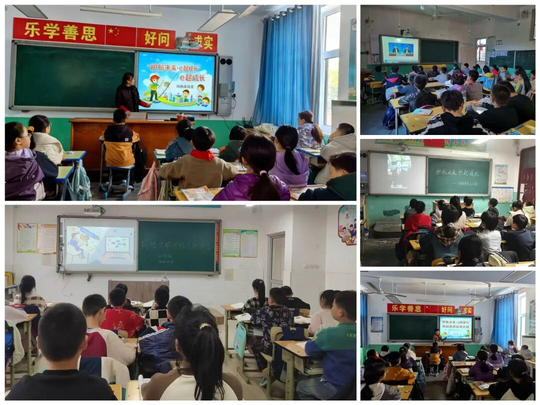 各班级组织开展了“护航未来·e起成长” 主题班会。班会上,班主任们通过精心准备的 PPT,向同学们介绍网络文明的重要性,讲解如何规范网络行为、未成年人网络保护等实用知识。通过交流讨论,同学们对网络安全、文明上网有了更深刻地认识。