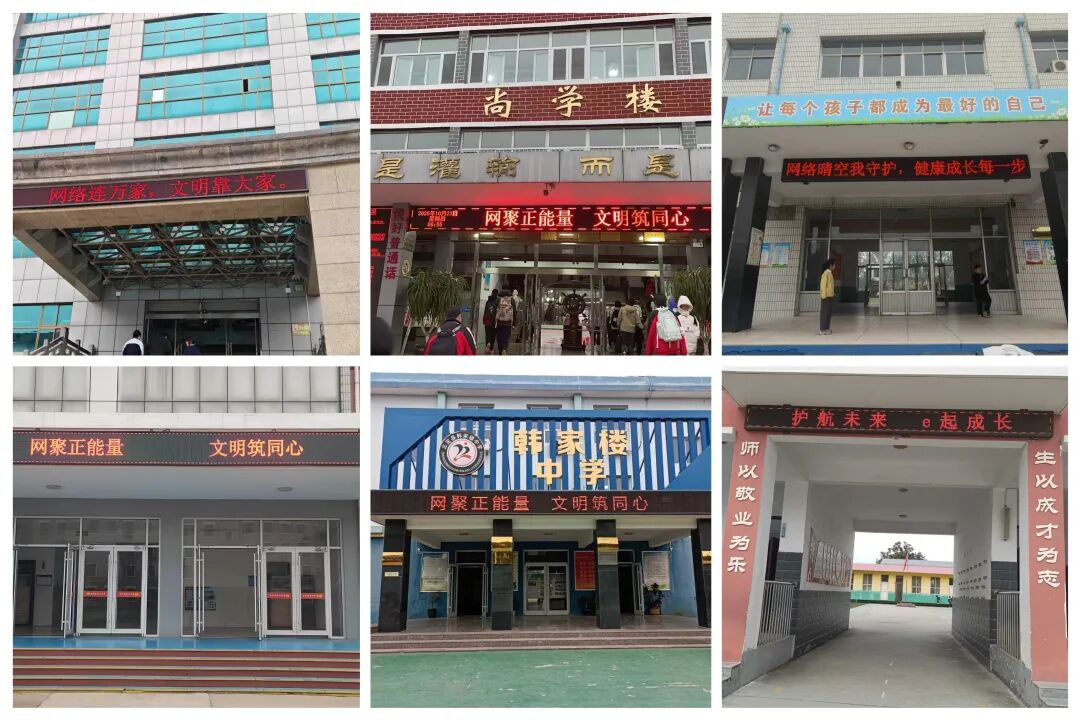 各学校充分利用室外LED 屏,滚动播放网络文明宣传标语,在校园中形成了一道亮丽的风景线,让大家在日常的校园生活中,潜移默化地接受网络文明素养的熏陶。