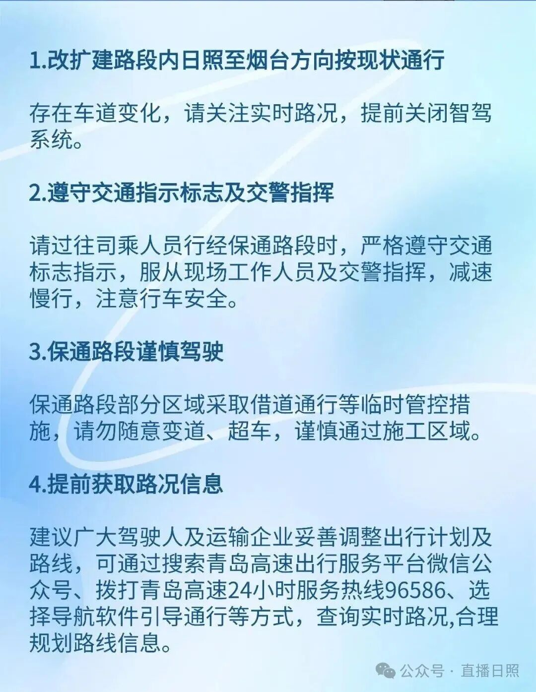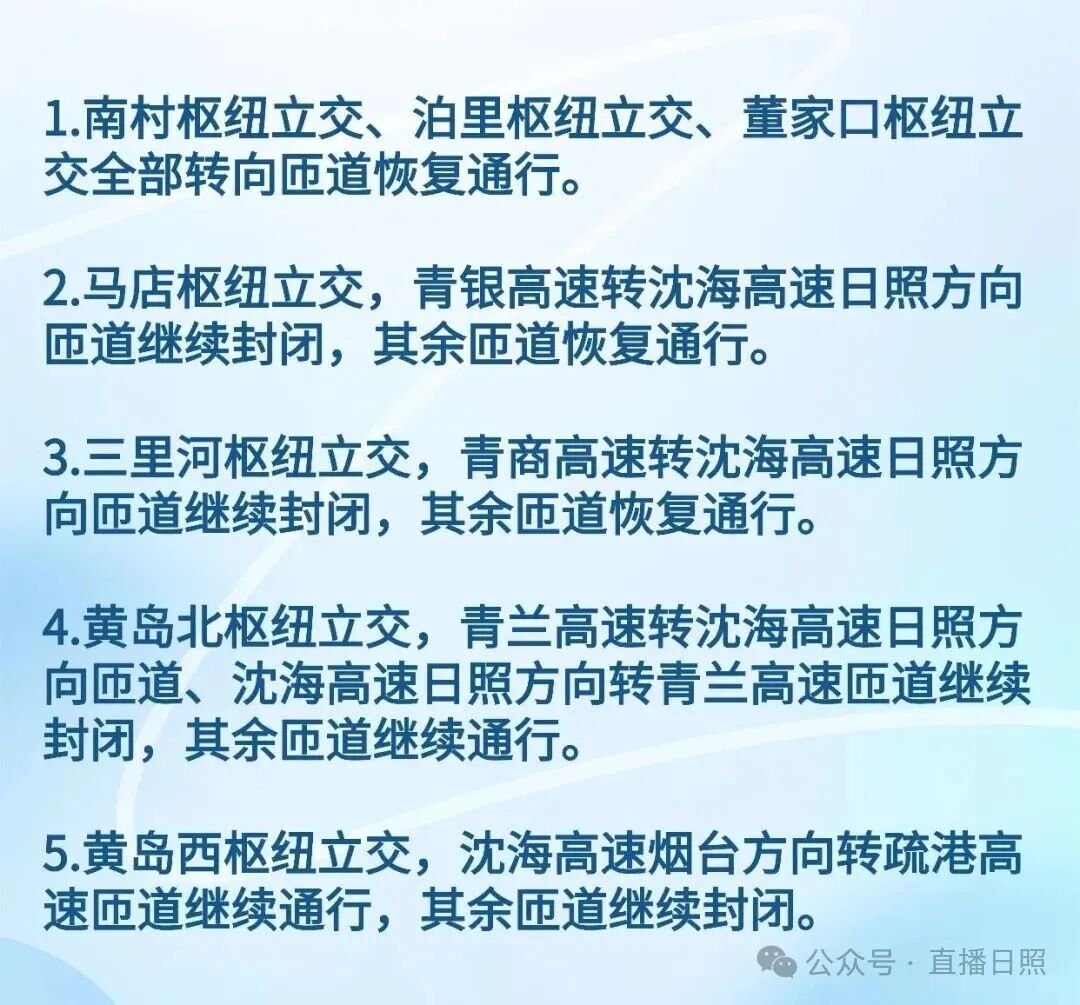 2.铁山收费站往日照方向匝道封闭,其它匝道恢复通行。