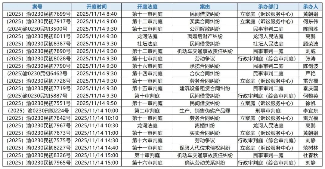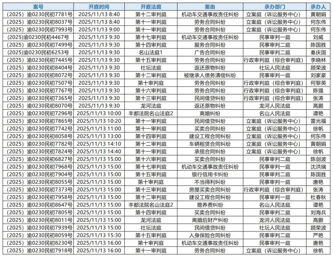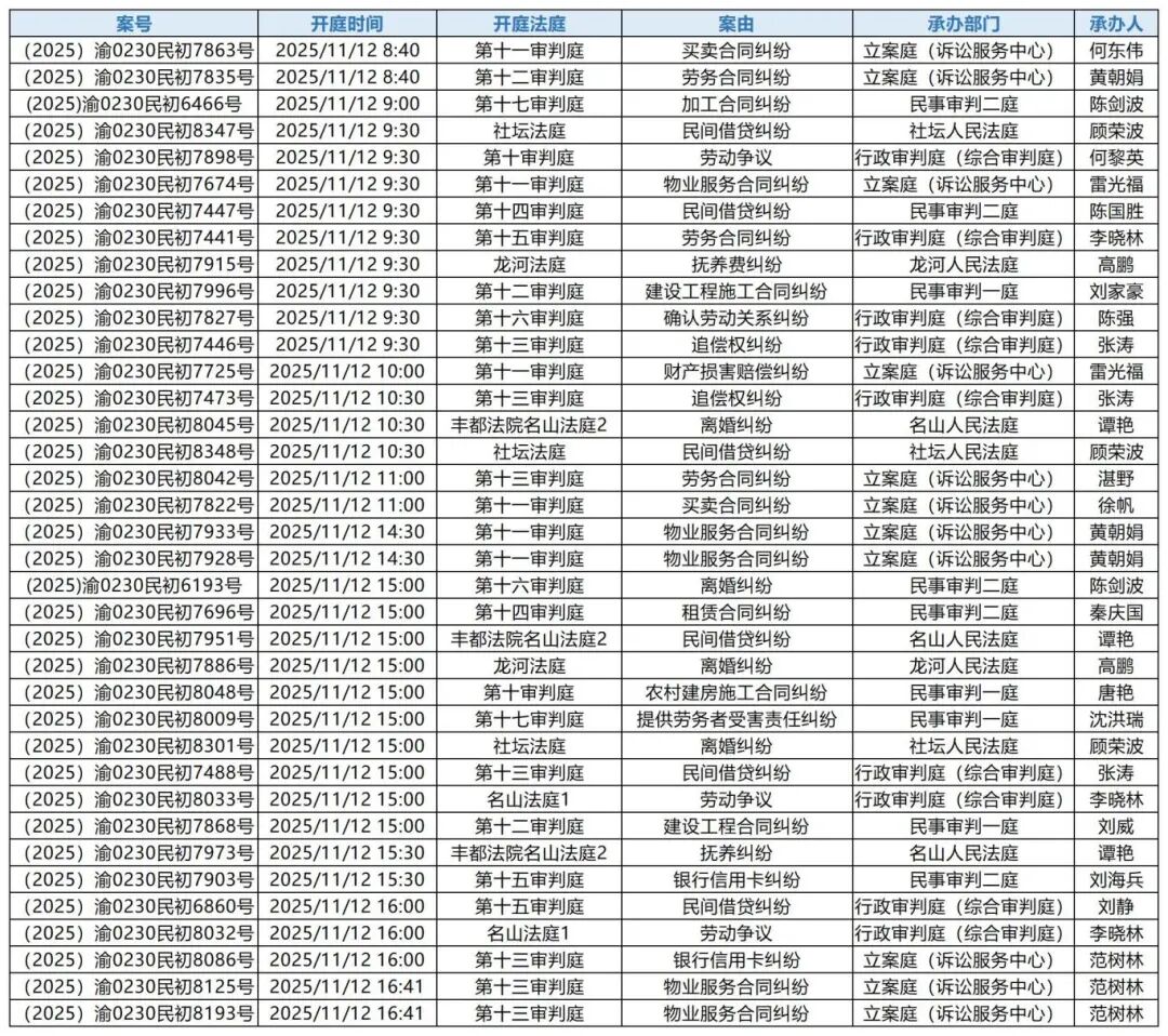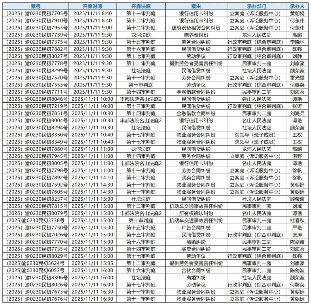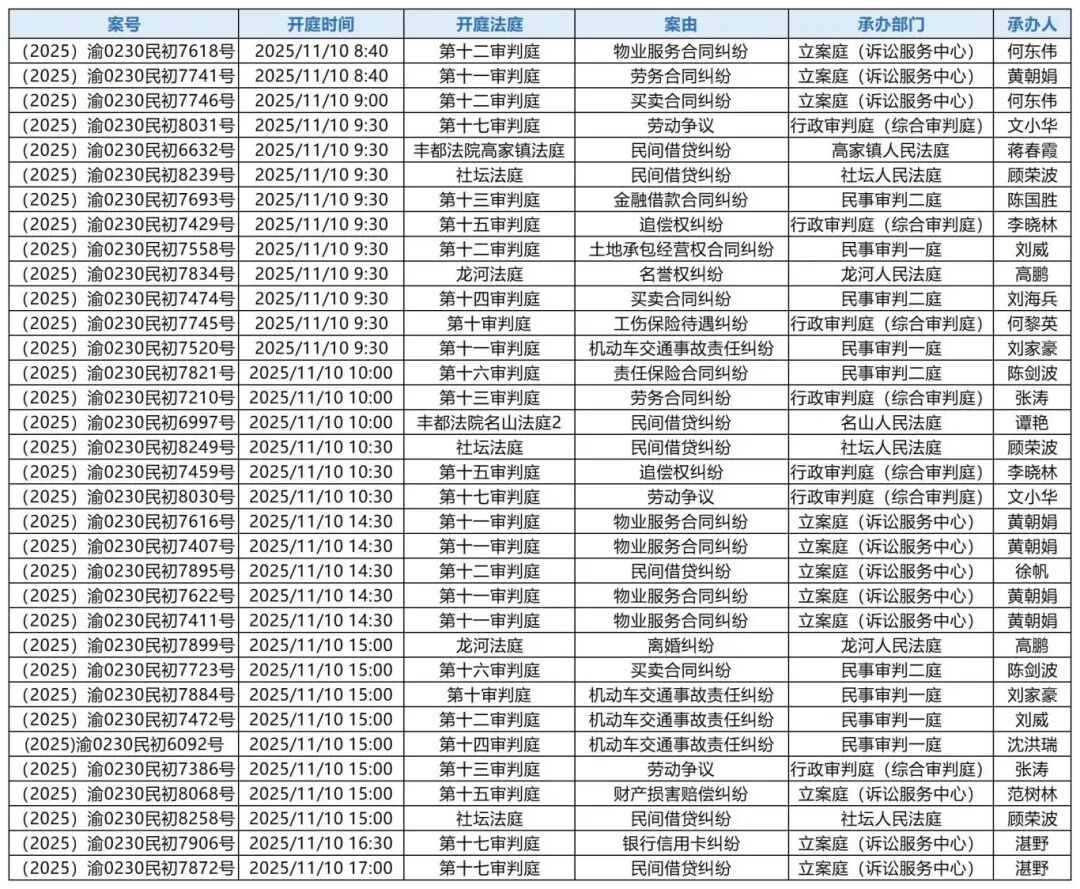 原标题:《【开庭公告】丰都县人民法院案件排期信息(11月10日-11月14日)》