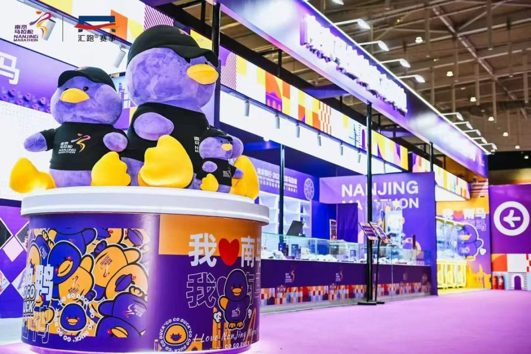 11月13日起,为时3天的南京马拉松博览会也在南京国际博览中心11-12号馆启幕。琳琅满目的品牌展台展示着马拉松相关行业的蓬勃活力,众多活动等待跑友打卡和互动,南马文创“尖叫版·加油鸭”也在现场限时限量放送。