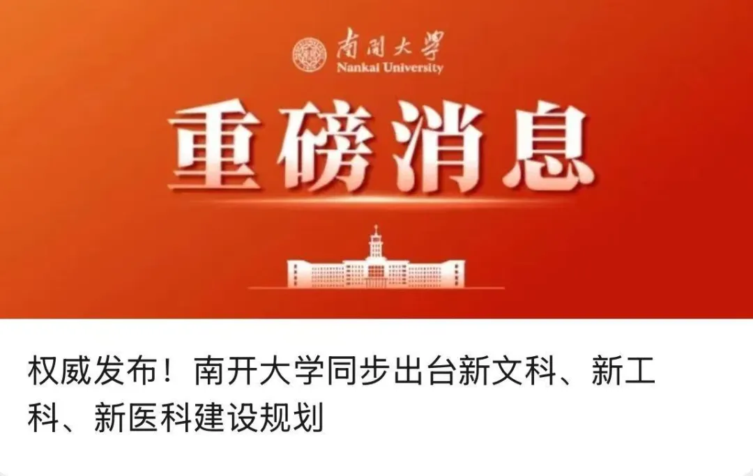 当前,南开大学紧扣中国式现代化建设战略需求,持续推进构建“文、理、工、医”协同并进的学科发展新格局。