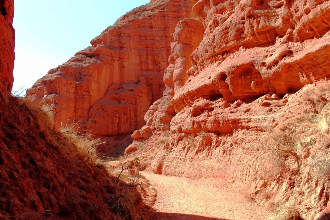 当地日照较强,需要墨镜、宽檐帽,徒步要穿防滑运动鞋。谷底部分路段较陡,想省力又想深度体验,可选坐越野车冲沙、骑骆驼看峡谷的壮美丹霞。